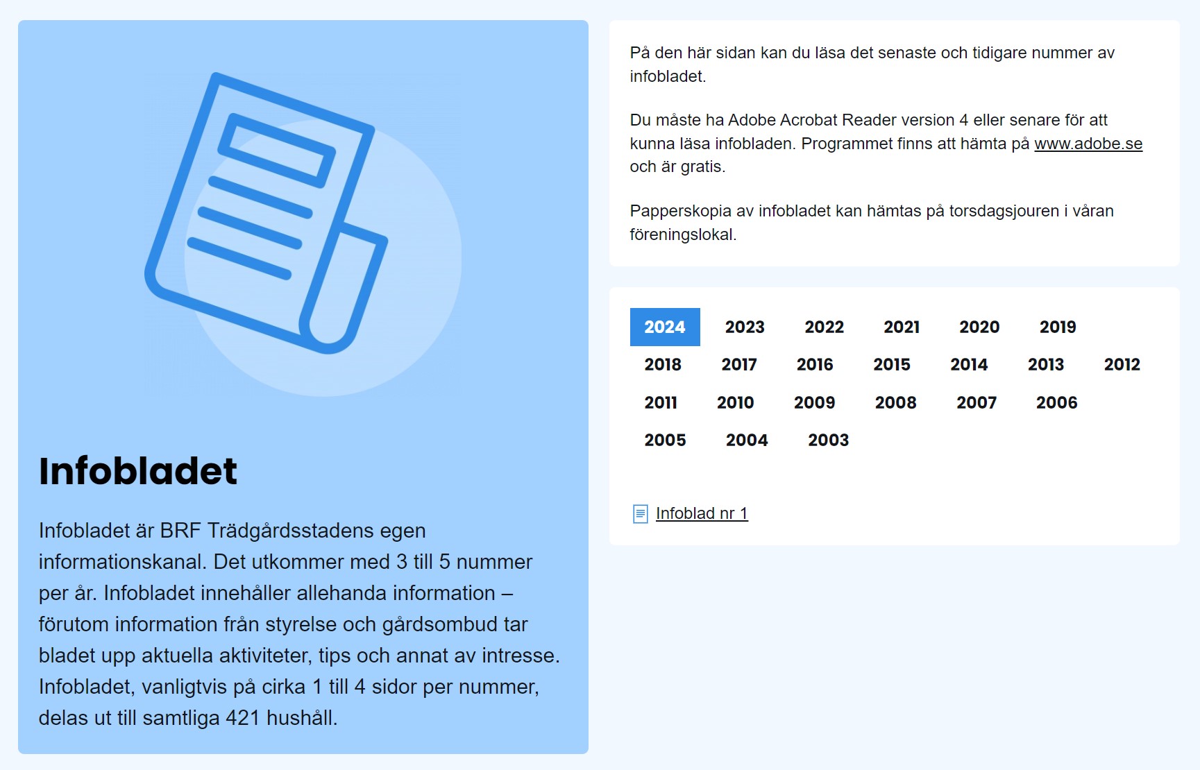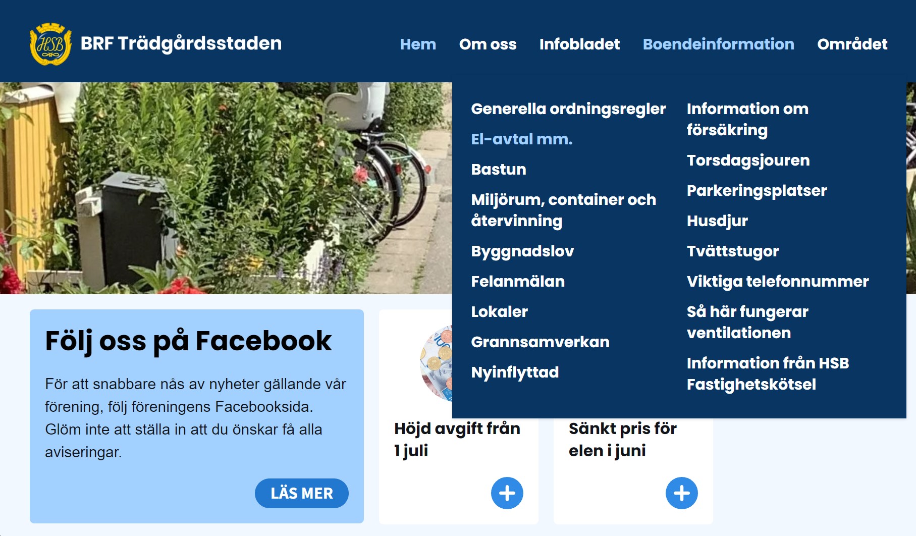 BRF Trädgårdsstaden är en bostadsrättsförening inom HSB i Akalla utanför Stockholm och samordnar felanmälan, lokalbokningar och fastighetsskötsel. Bostadsrättsföreningen kontaktade Viksjö Webbyrå för att få hjälp med att redesigna den tidigare hemsidan med syftet att förenkla och förbättra kontakten med de boende med hemsidan som navet i kommunikationen.