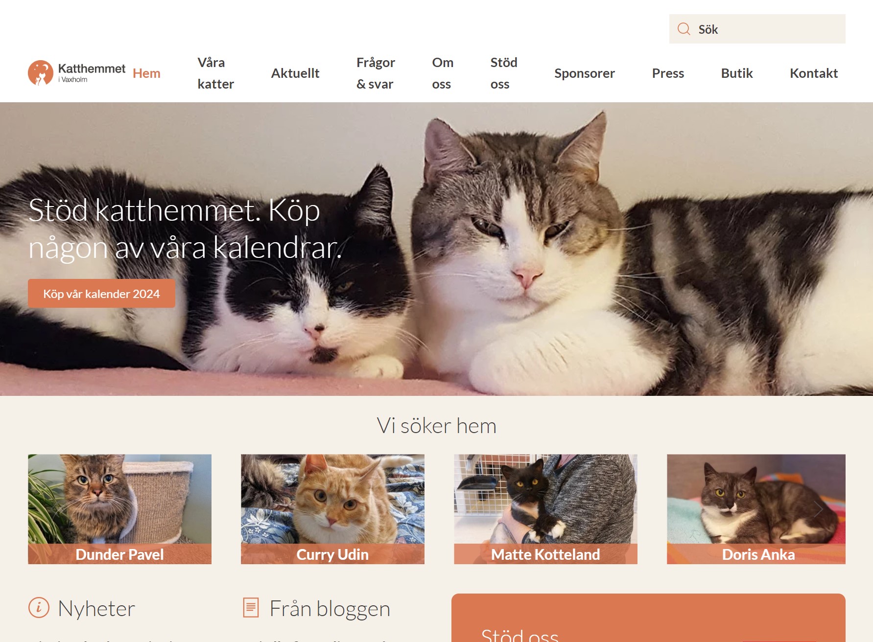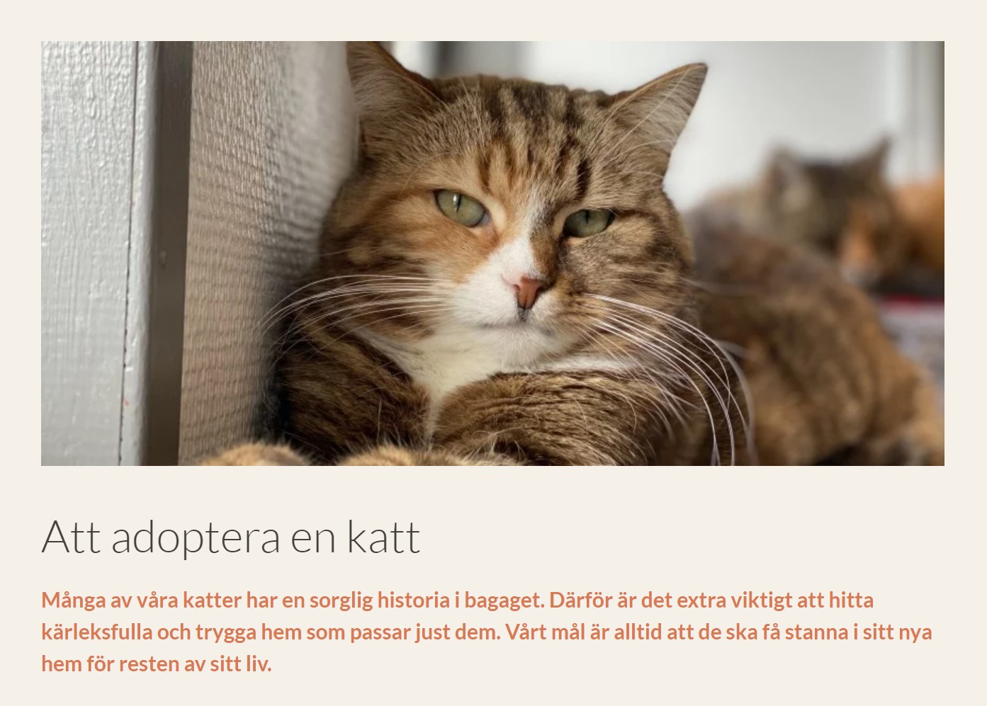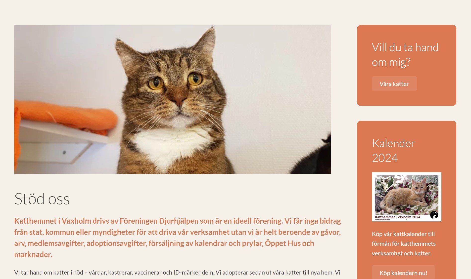 Katthemmet i Vaxholm drivs av Föreningen Djurhjälpen som är en ideell förening som tar hand om katter i nöd – hemlösa, utsatta, övergivna. Katthemmets hemsida är en viktig kanal för att få kontakt med möjliga adoptivfamiljer. Eftersom den tidigare hemsidan inte längre fungerade optimalt fick Viksjö Webbyrå i uppdrag att optimera och säkerställa hemsidan inför framtiden.