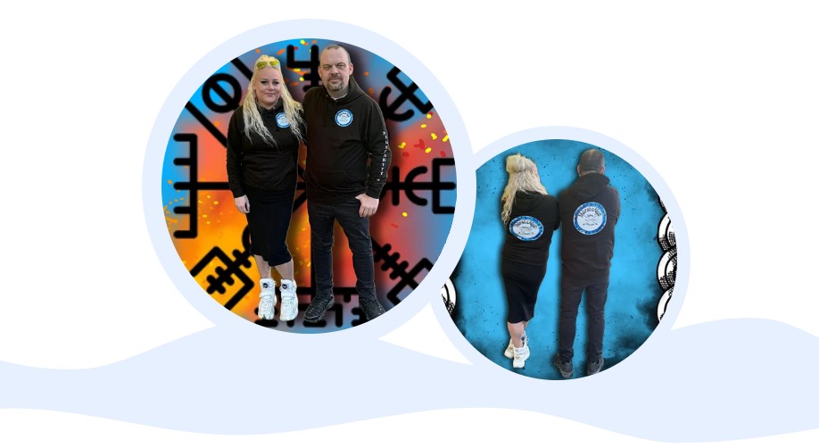 Med målet att skapa en enkel, modern och stilren hemsida använde vi inspiration från den befintliga logotypen. Resultatet blev den blå färgtonen i kombination med stilistiska illustrationer med vikingatema. Vi valde också att lyfta fram logotypen mer som ett emblem som får sätta karaktären för hela designen. Företagets kontaktuppgifter och knappen Kontakta oss är tydligt närvarande på alla enskilda sidor för att uppmana till kontakt.