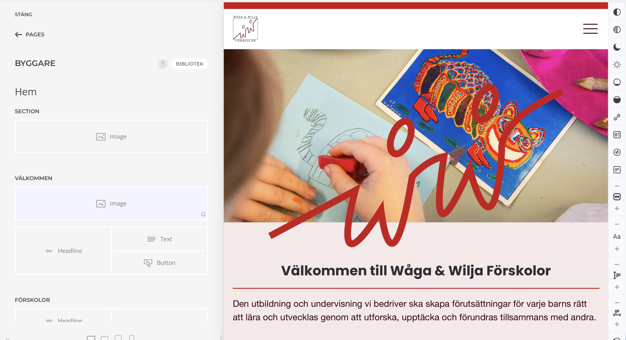Viksjö Webbyrå fick i uppdrag att ta fram en redesign av webbplatsen för Wåga & Wilja Förskolor, som driver förskolor i Järfälla och Enköping. Målet var att skapa en modern och lättanvänd webbplats som gör det enkelt för föräldrar att hitta information och få ett förtroende för verksamheten.
